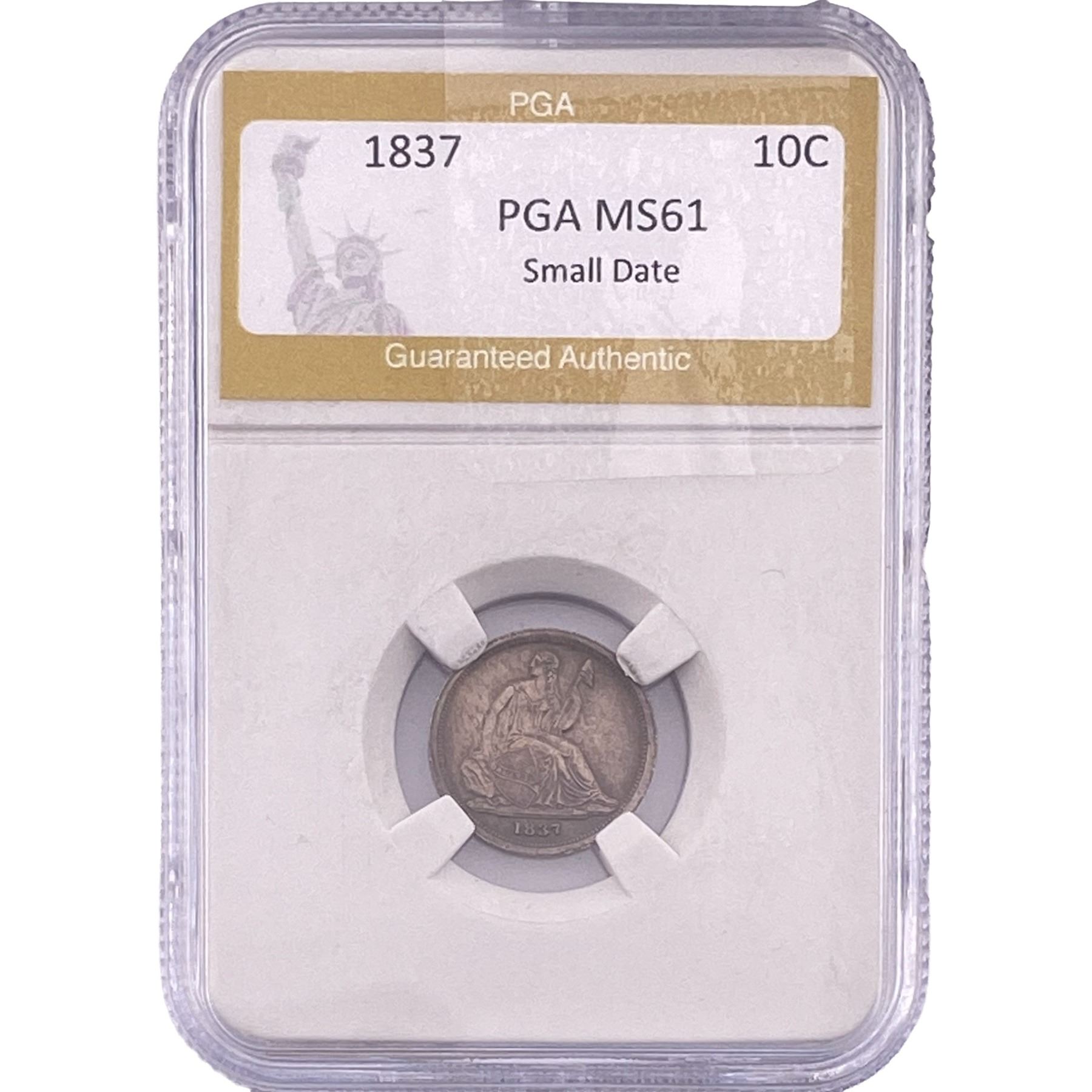 1837 Seated Liberty Dime PGA MS61 Small Date