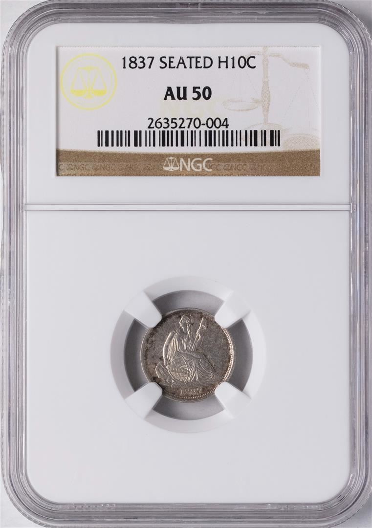One 1837 Seated Liberty Half Dime Coin NGC AU50. NGC Certified.