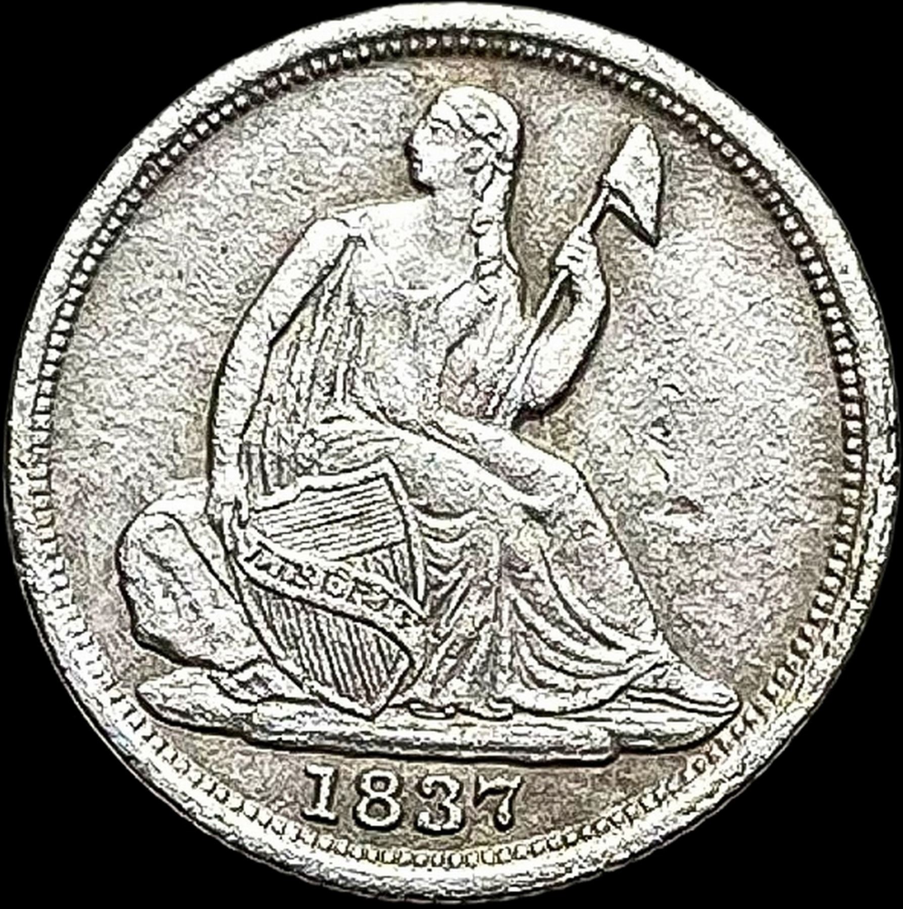 1837 Seated Liberty Half Dime No Stars CLOSELY UNCIRCULATED