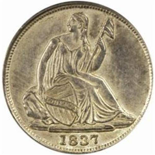 1837 Seated Liberty Half Dime. No Stars. Small Date. AU-58 (PCGS).