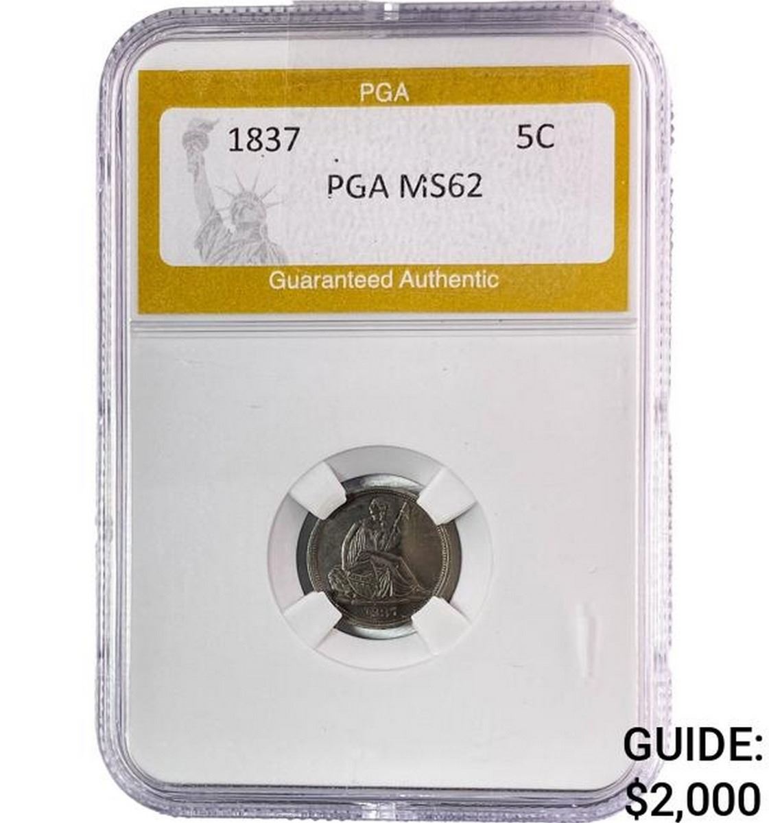 COINS AND CURRENCY LISTED IN GSA’S CATALOG AS GRADED AND ENCAPSULATED BY PCGS, NGC, ANACS, ICG, PCGS CURRENCY, PMG, PCGS BANKNOTE GRADING, CMC OR ANY OTHER THIRD-PARTY GRADING SERVICE ARE LIKEWISE SOLD “AS-IS” EXCEPT AS EXPRESSLY SET FORTH HEREIN. ALL THIRD-PARTY GRADING SERVICE GUARANTEES, INCLUDING AUTHENTICITY, ARE THE SOLE RESPONSIBILITY OF THE THIRD-PARTY GRADING SERVICE AND NOT WARRANTIES OR GUARANTEES OF GSA. BIDDERS SHOULD CONTACT THESE THIRD-PARTY GRADING SERVICES DIRECTLY WITH RESPECT TO ANY CLAIMS OR QUESTIONS THEY MAY HAVE CONCERNING THEIR GUARANTEES AND WARRANTIES. BIDDERS ACKNOWLEDGE AND AGREE THAT AUCTIONEER IS NOT BOUND BY OR LIABLE FOR ANY OPINION OR CERTIFICATION BY ANY THIRD-PARTY GRADING SERVICE. REMOVAL OF A PRODUCT FROM ITS PROTECTIVE CASING OR HOLDER OR ALTERATION OF ANY COIN HOLDER WAIVES ALL RIGHTS CONCERNING THE PRODUCT CONTAINED THEREIN.