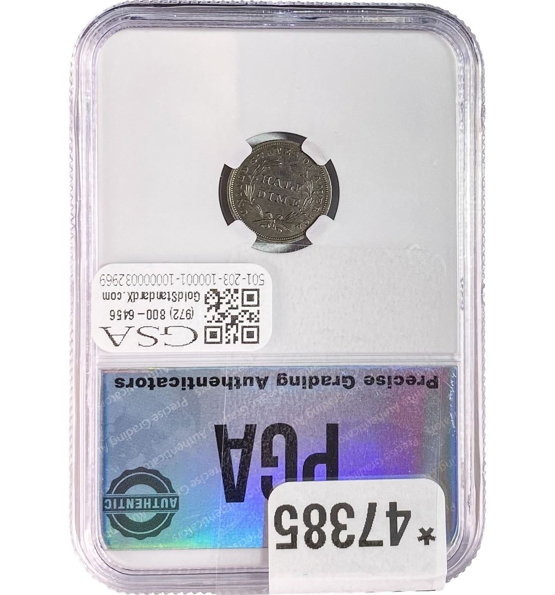 l. All non-certified coins and currency are guaranteed genuine, but are not guaranteed as to grade, since grading is a matter of opinion, an art and not a science, and therefore the description rendered by GSA or any third-party grading service may not agree with the opinion of others (including trained experts), and the same expert may not grade the same item with the same grade at two different times. GSA may, but is not obligated to, express an opinion as to non-certified numismatic items, in GSA’s opinion, or by its employees’ experience and the current interpretation of the American Numismatic Association’s standards as of the date the catalog was prepared. There is no guarantee or warranty expressed or implied that the grading opinions utilized by GSA, if any, will meet the standards of any grading service at any time in the future.