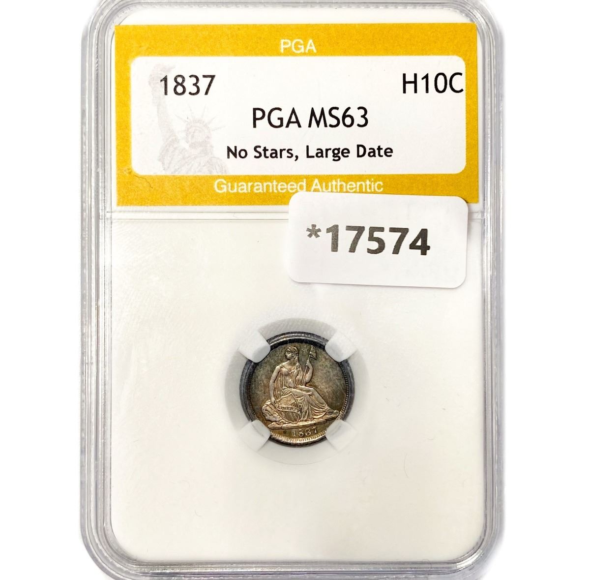 1837 Seated Liberty Half Dime PGA MS63 No Stars,
