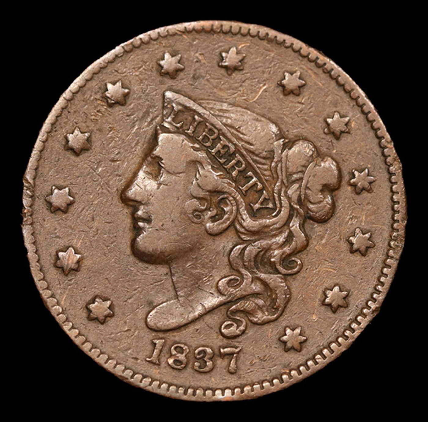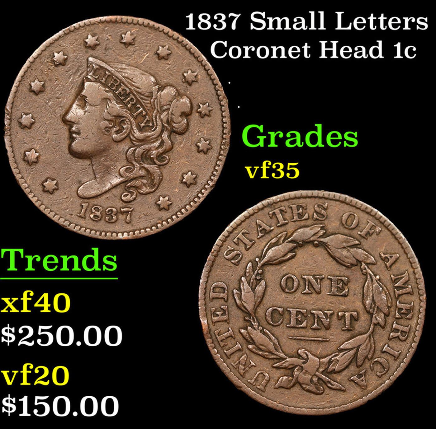 1837 Small Letters Coronet Head Large Cent 1c Grades vf++.