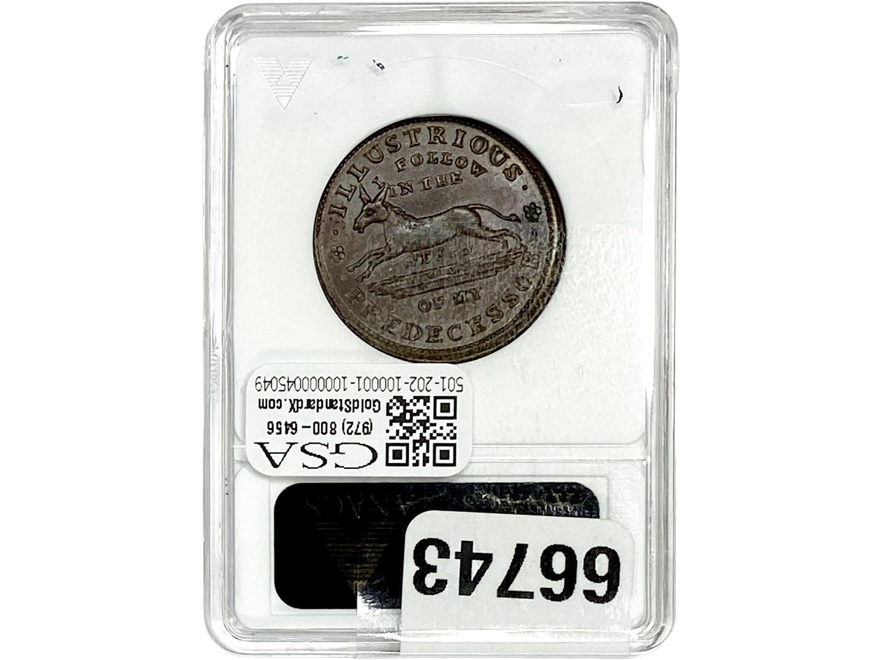 l. All non-certified coins and currency are guaranteed genuine, but are not guaranteed as to grade, since grading is a matter of opinion, an art and not a science, and therefore the description rendered by GSA or any third-party grading service may not agree with the opinion of others (including trained experts), and the same expert may not grade the same item with the same grade at two different times. GSA may, but is not obligated to, express an opinion as to non-certified numismatic items, in GSA’s opinion, or by its employees’ experience and the current interpretation of the American Numismatic Association’s standards as of the date the catalog was prepared. There is no guarantee or warranty expressed or implied that the grading opinions utilized by GSA, if any, will meet the standards of any grading service at any time in the future.