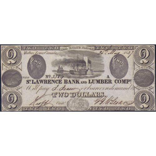 1837 Two Dollars Saint Lawrence Bank, CH 665-10-04 Serial Number 3384 A, PMG Choice Uncirculated 64 Exceptional Paper Quality