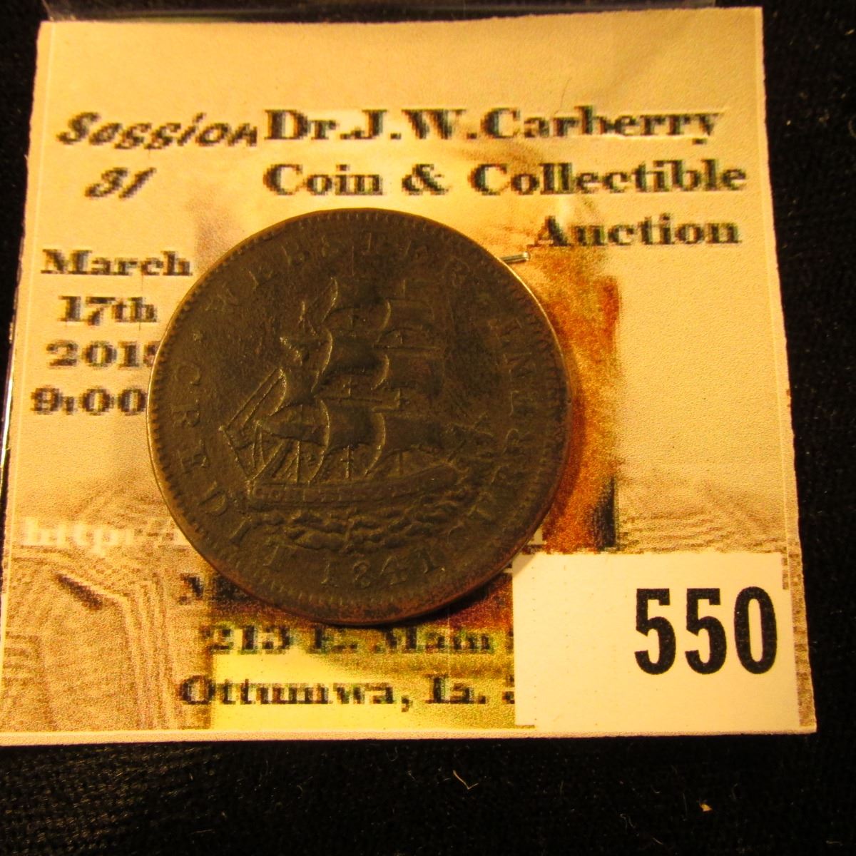 "1837 Van Buren Metallic Current", "1841 Webster Credit Current" Hard Times Token.