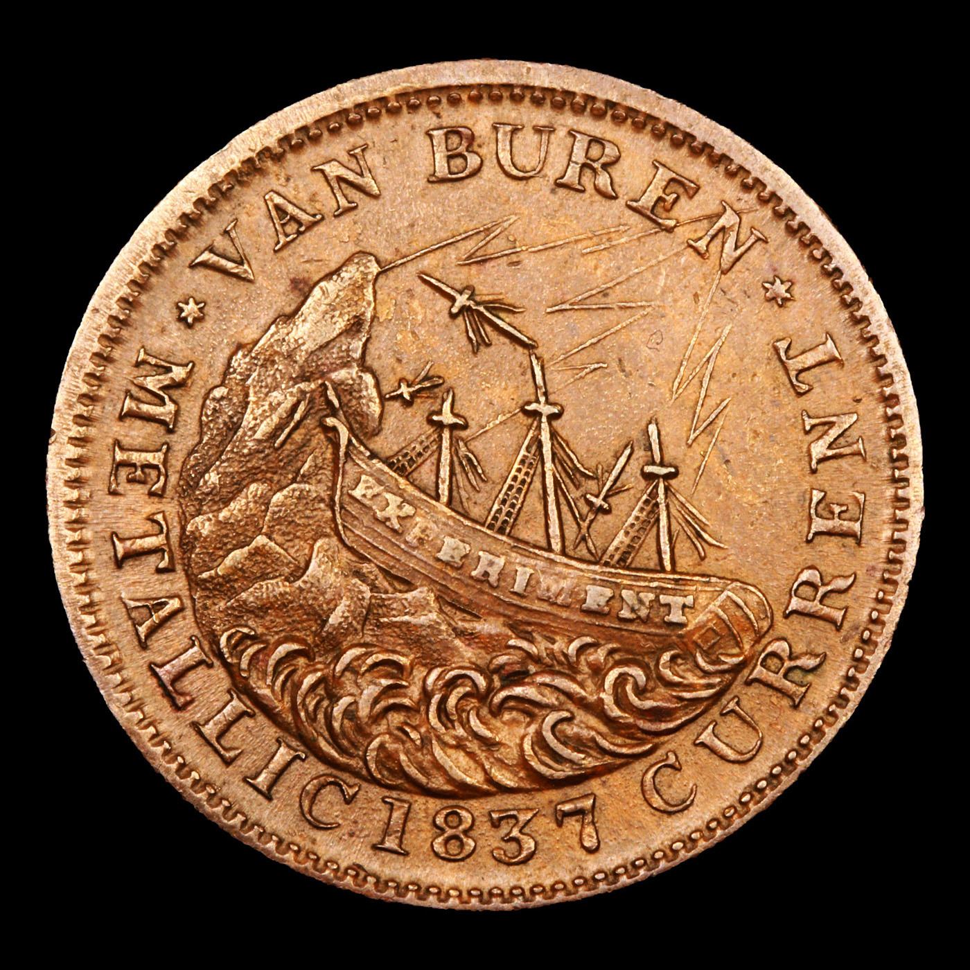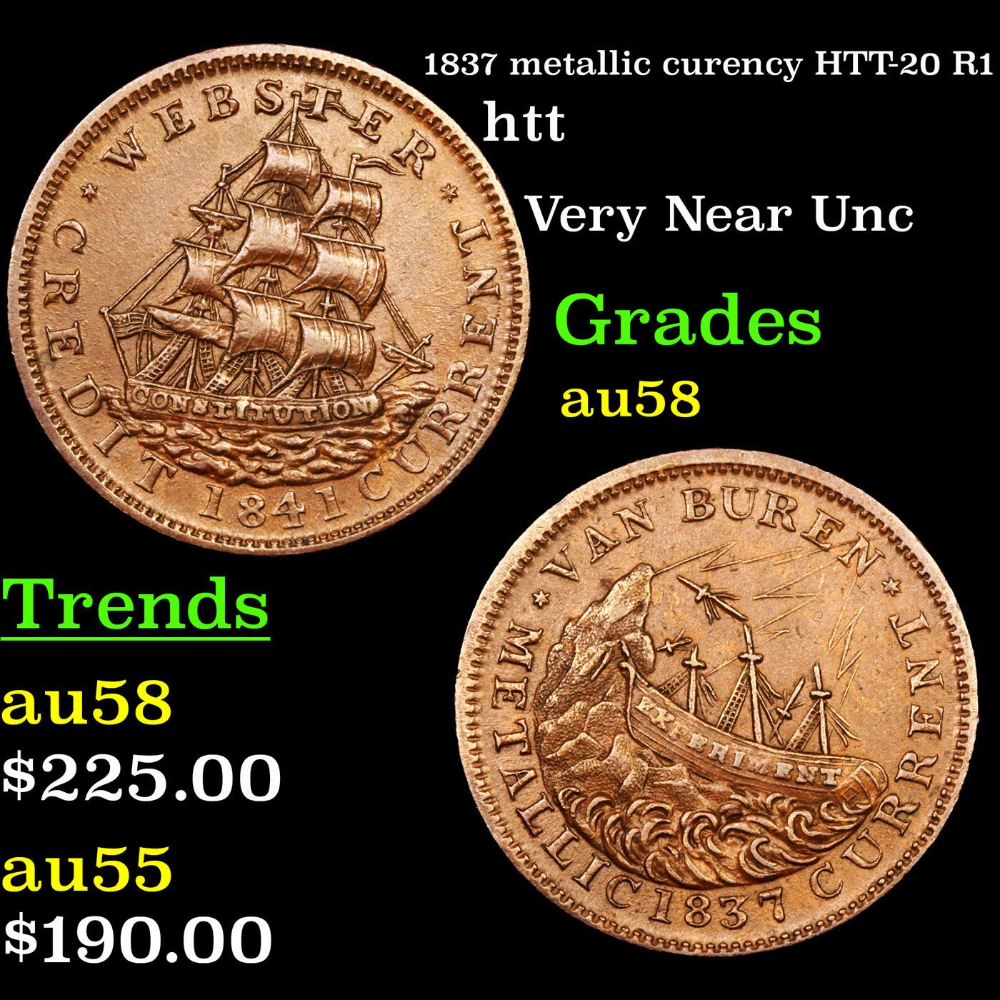 1837 metallic curency HTT-20 R1 Hard Times Token 1c Grades Choice AU/BU Slider.