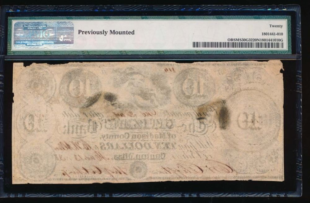 One 1838 $10 Citizens Bank of Madison Note PMG 20NET.