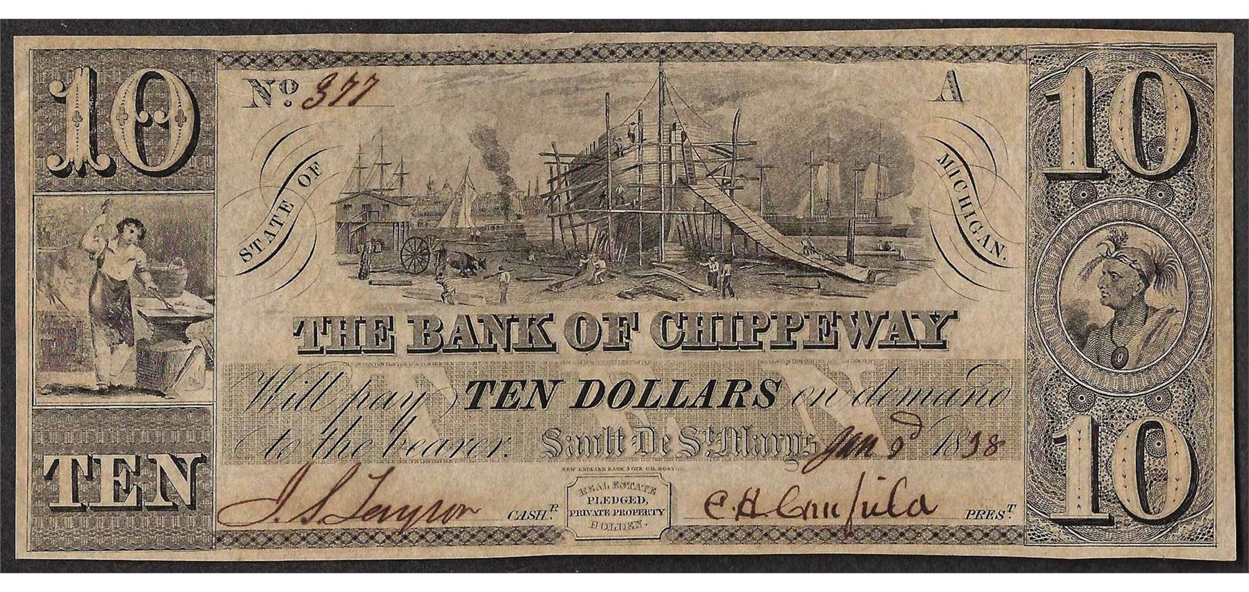 One 1838 $10 The Bank of Chippeway Obsolete Note.