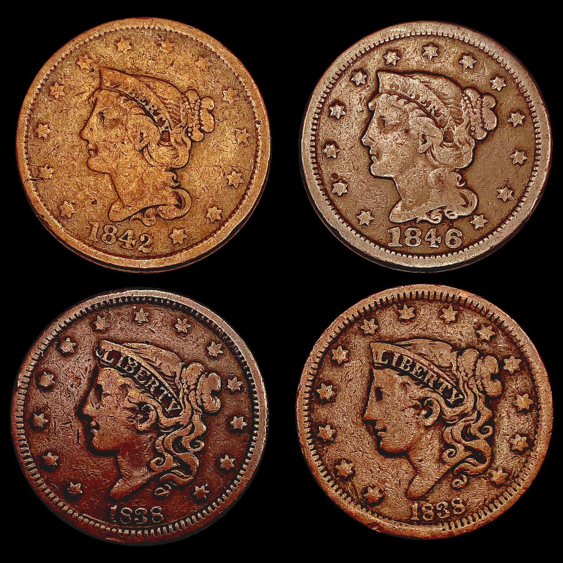 1838-1842 US Large Cent Collection [4 Coins] LIGHTLY CIRCULATED