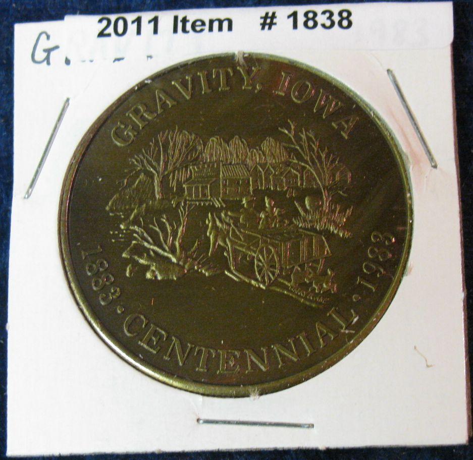 1838. 1883-1983 Gravity, Ia. Centennial Medal. Brass.
