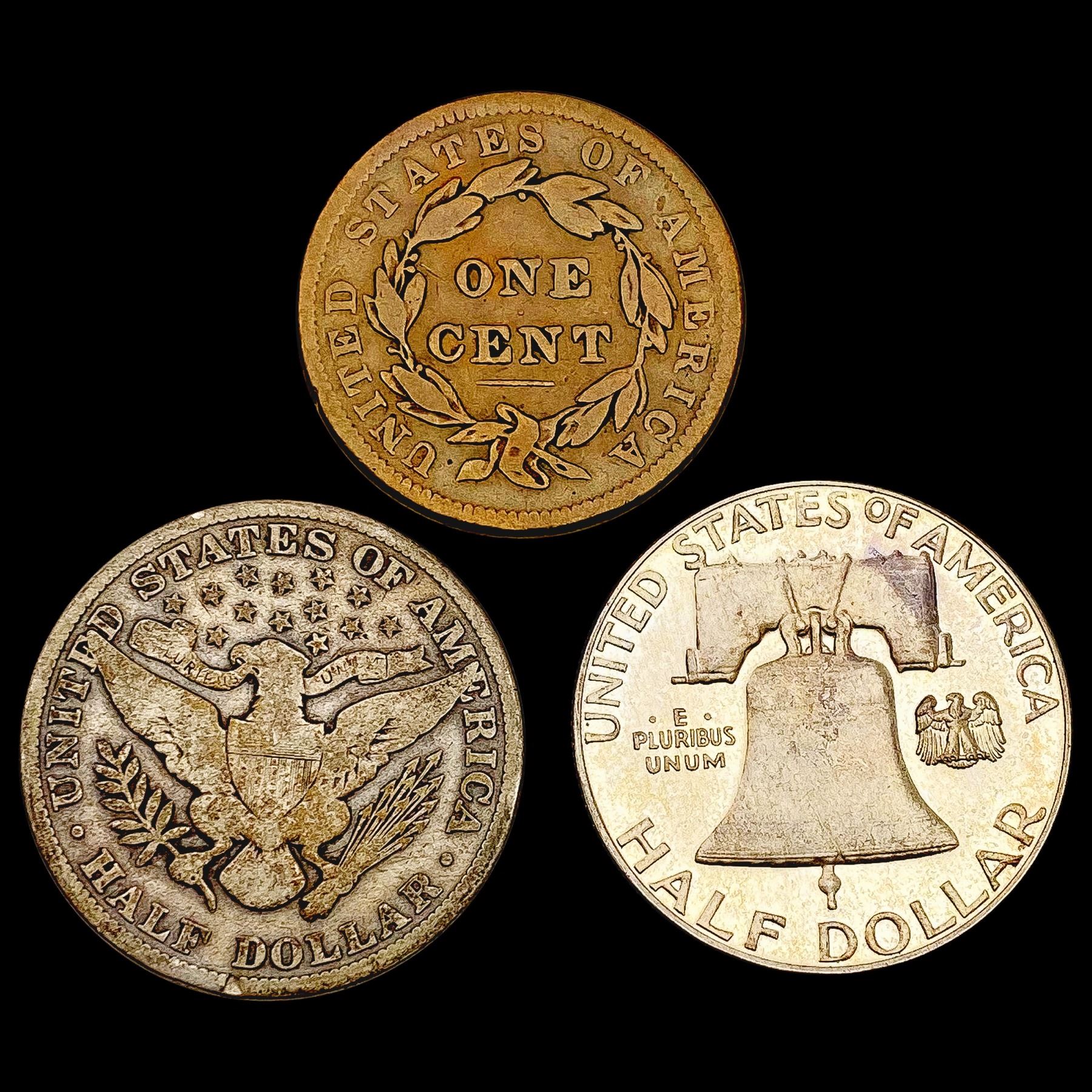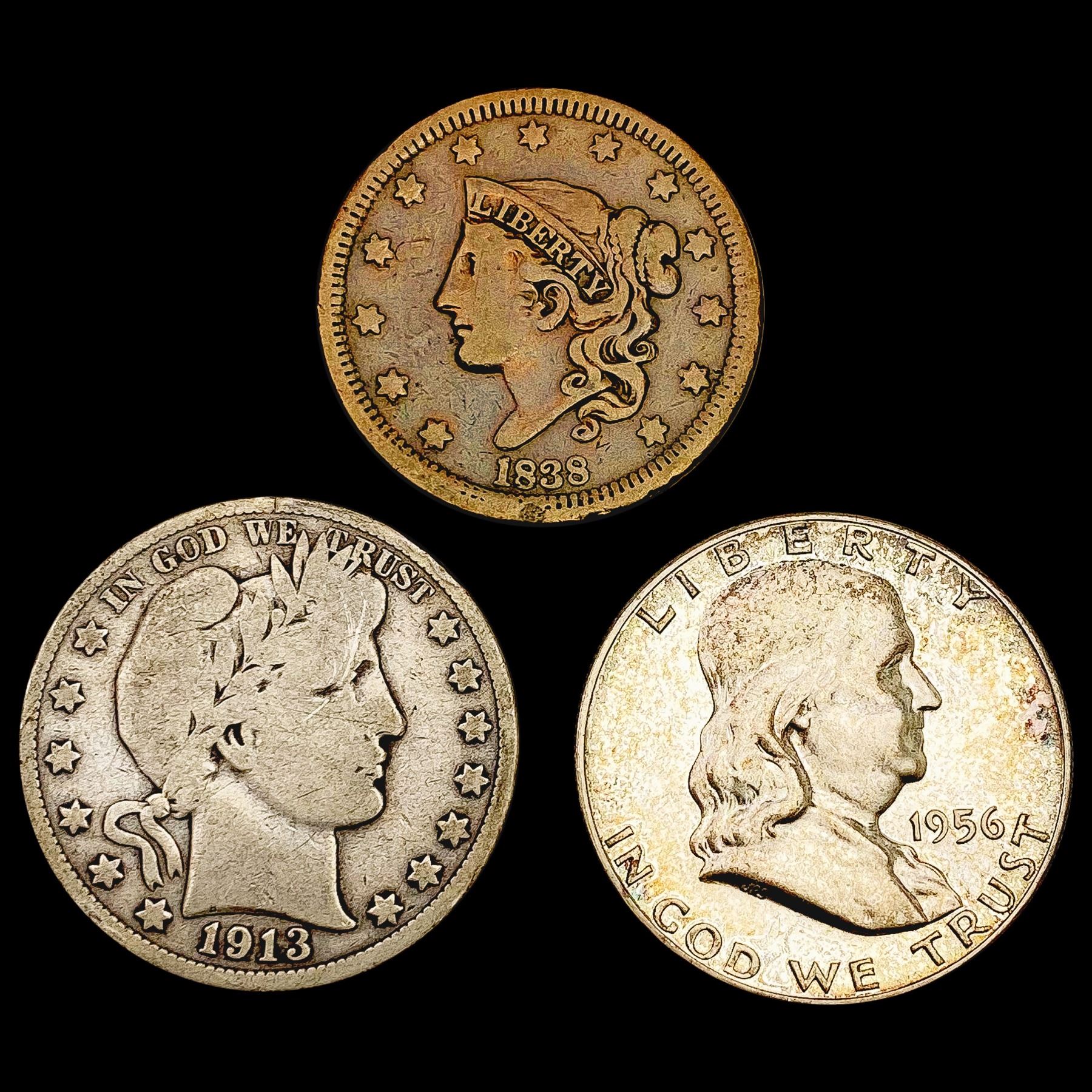 1838-1956 Varied US Coinage Lot [3 Coins] HIGH GRADE