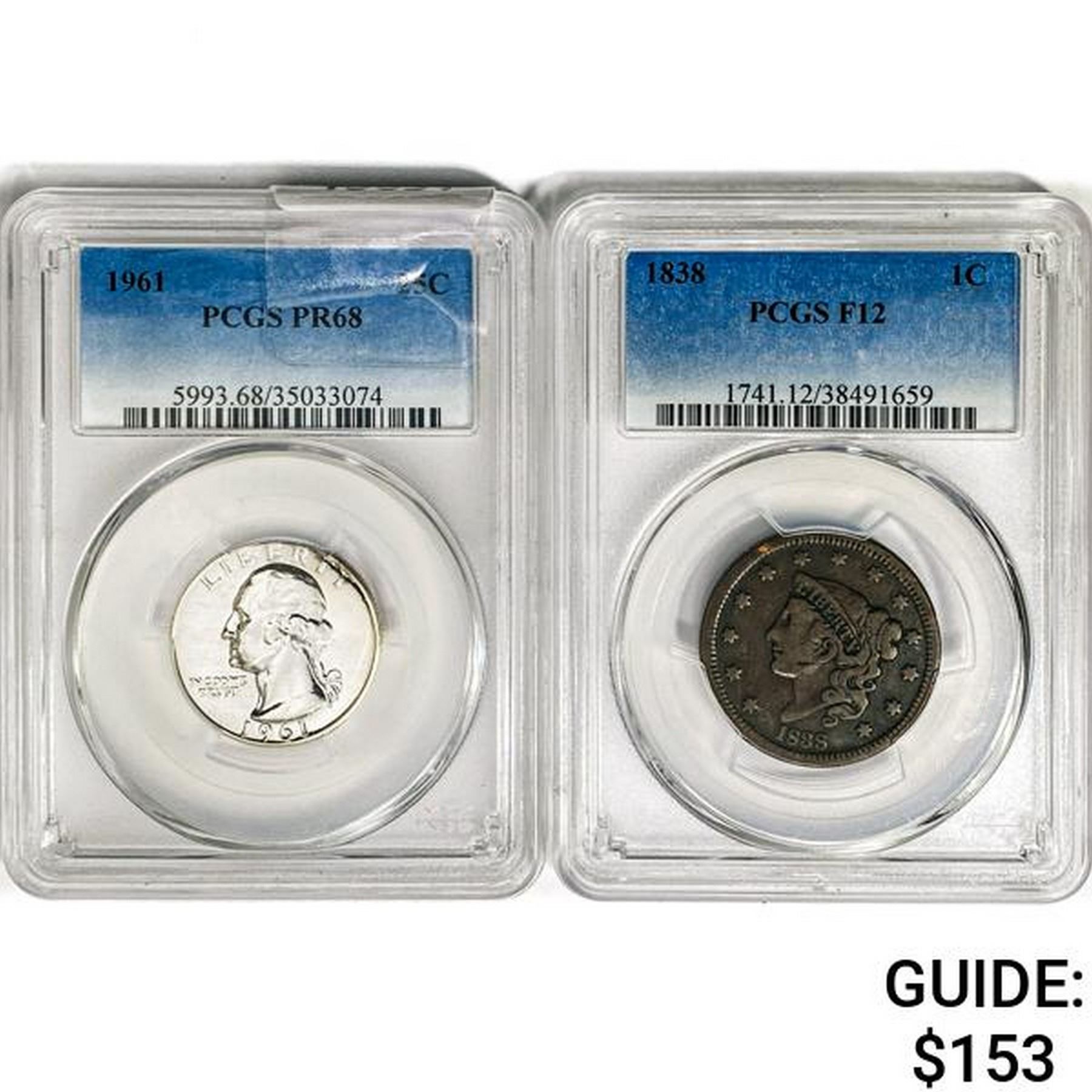 1838&1961 [2] 1 LC, 1 25C PCGS PR/F