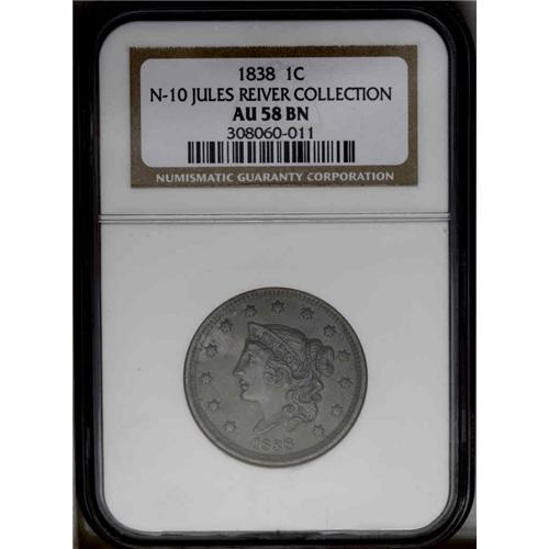 1838 1C N-10, High R.2. AU58 NGC. AU55 EAC. This is a 1838[1C] N-10, High R.2. AU58 NGC. AU55 EAC.
