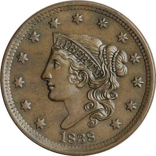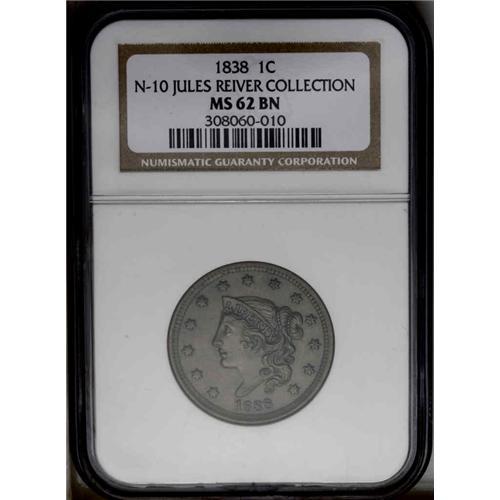 1838 1C N-10, High R.2. MS62 Brown NGC. AU55 EAC. An i 1838[1C] N-10, High R.2. MS62 Brown NGC. AU55