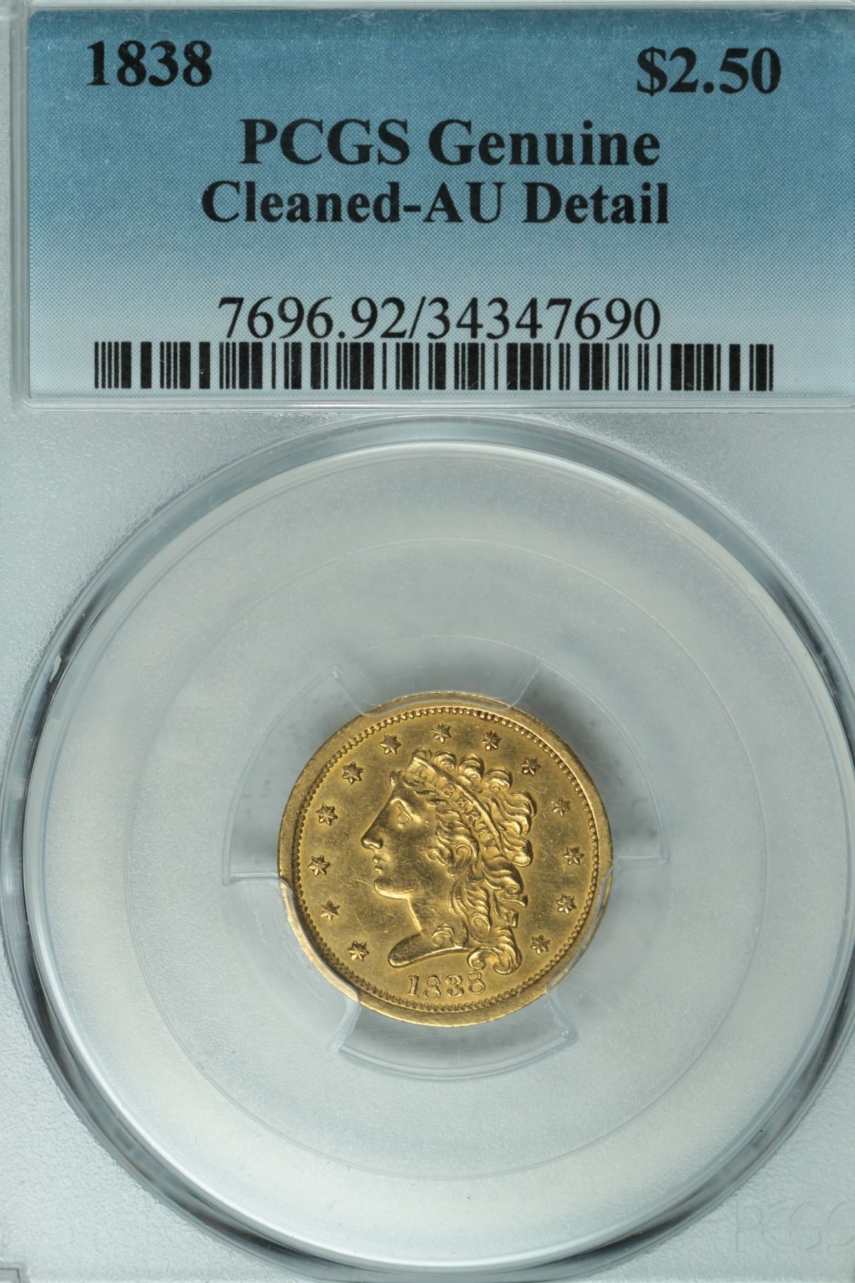 1838 $2.5 Classic Head, PCGS Genuine AU