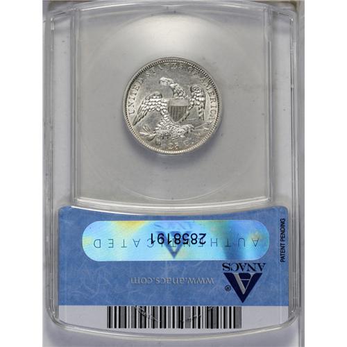 <B>1838<25C> AU55 ANACS.</B></I> B-1, R.1. The only dies for this conditionally scarce date. Seated quarters were first produced later the same year. A lightly toned piece with slight wear on the portrait and a couple of brief marks beneath the eagle's wings.