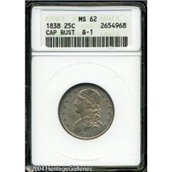1838 25C MS62 ANACS. B-1, R.1. Olive-gold color re 1838 25C MS62 ANACS.