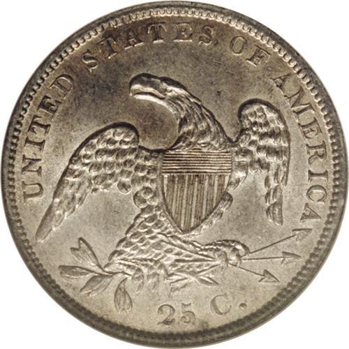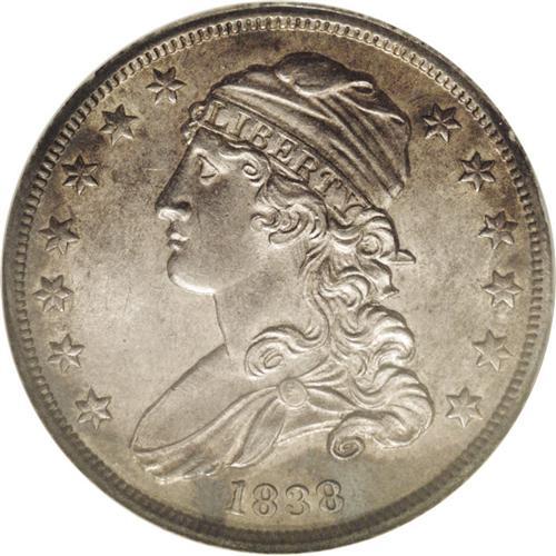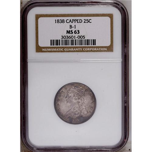 1838 25C MS63 NGC. B-1, R.1. 1838 marks a transitional 1838[25C] MS63 NGC.