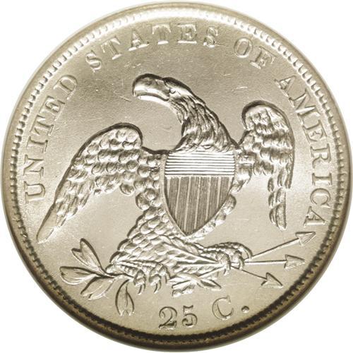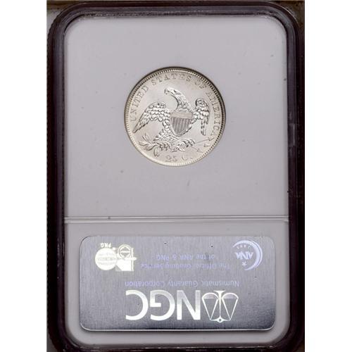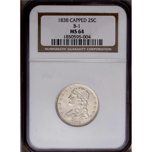 1838 25C MS64 NGC. B-1, R.1. Only one pair of dies was