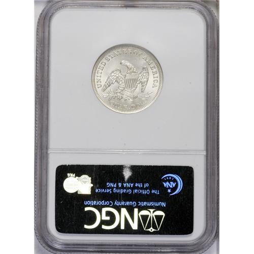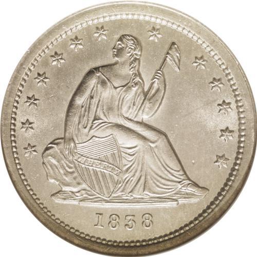 <B>1838<25C> No Drapery MS65 NGC.</B></I> Boldly detailed, as is normally expected of this first year of the Liberty Seated type, with full radial lines on each of the stars, a strong head and cap on the obverse, and with no weakness of any kind on the eagle, shield, denticles, or lettering on the reverse. The surfaces are vibrant and virtually untoned, with few appreciable blemishes of any kind. Despite a seemingly high mintage of 466,000 pieces and particularly considering its status as the first year of a new design, the 1838 No Drapery remains elusive in Mint State and nearly impossible as a Gem. Census: 4 in 65, 3 finer (7/06).