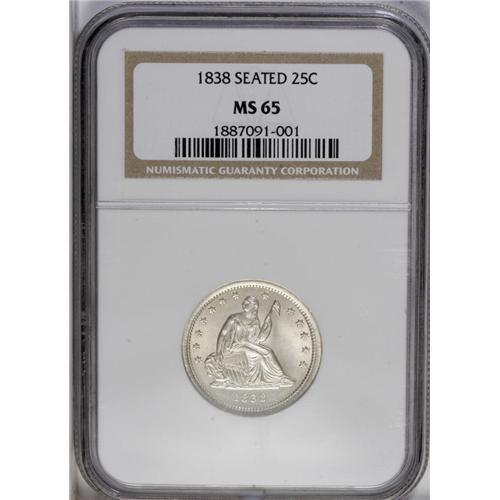 1838 25C No Drapery MS65 NGC. Boldly detailed, as is n