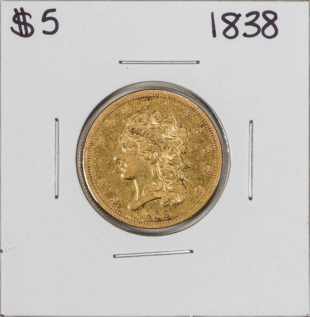 One 1838 $5 Classic Head Half Eagle Gold Coin.