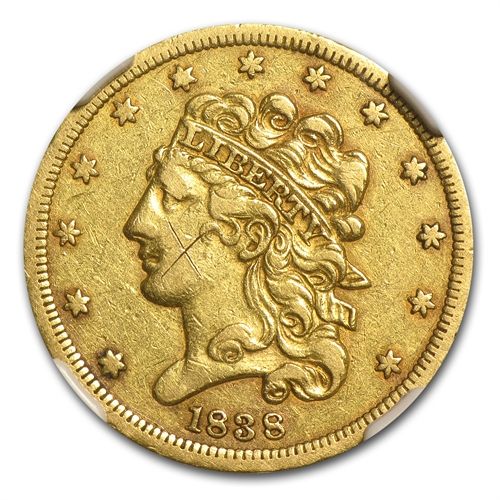 1838 $5 Gold Classic Head Half Eagle - XF Detail NGC - **|**|** 1838 $5 Gold Classic Head Half Eagle - XF Detail NGC - (Graffiti) ; MSRP: $1000