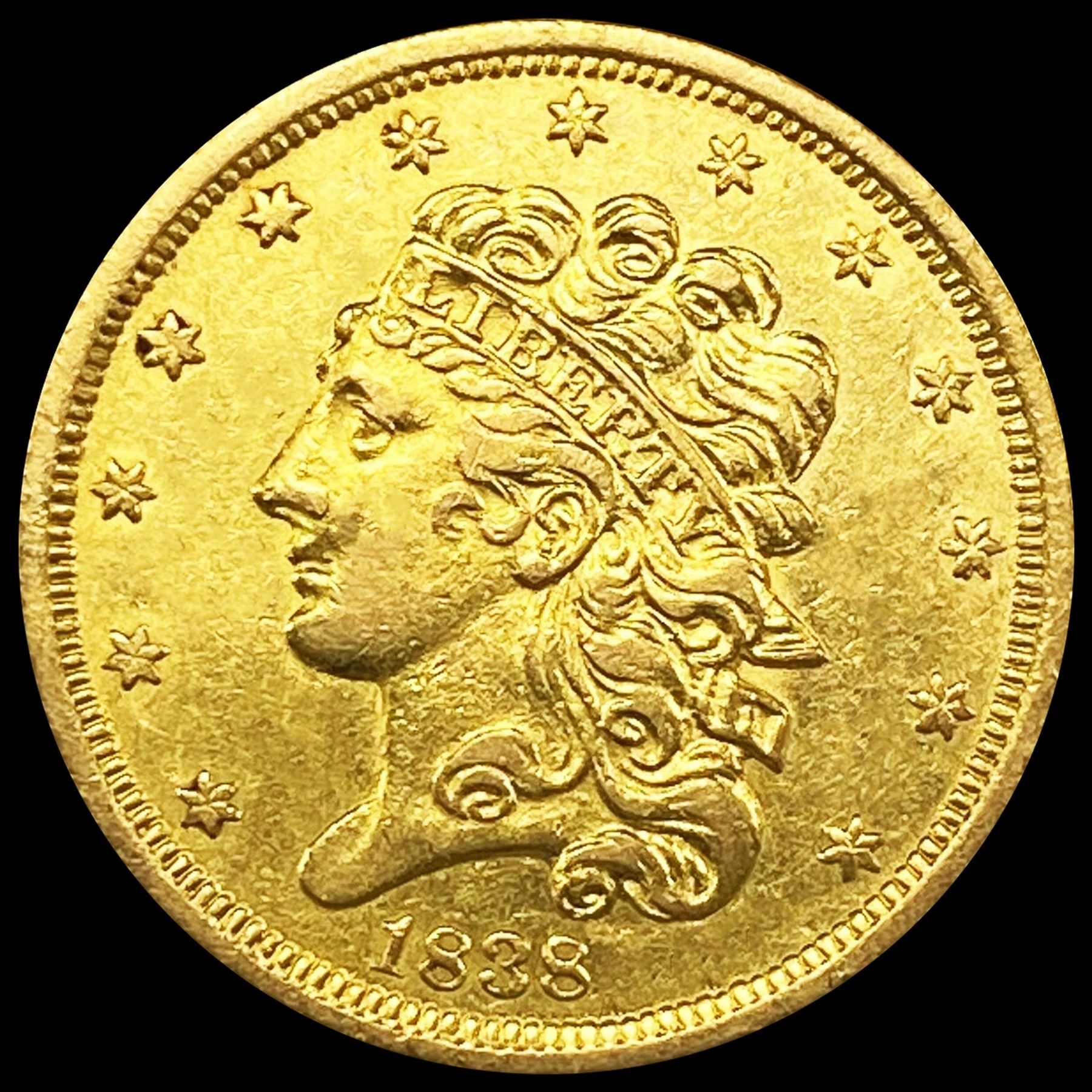 1838 $5 Gold Half Eagle CLOSELY UNCIRCULATED