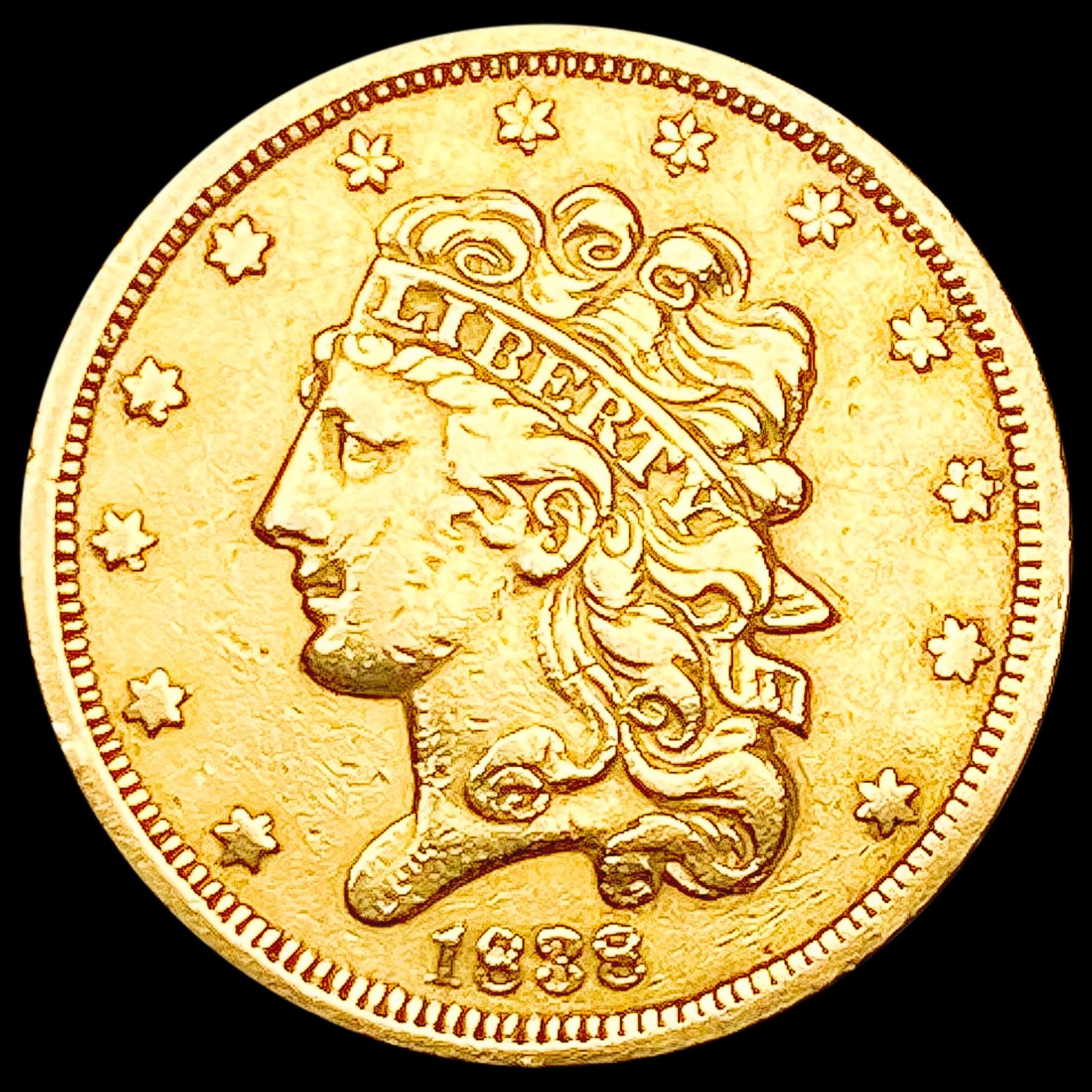 1838 $5 Gold Half Eagle LIGHTLY CIRCULATED