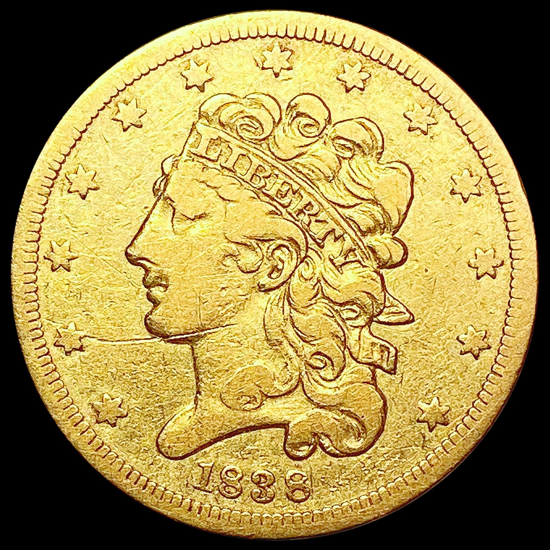 1838 $5 Gold Half Eagle NICELY CIRCULATED