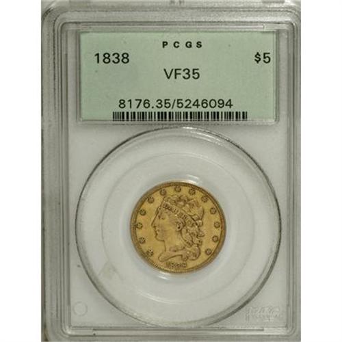 1838 $5 VF35 PCGS. PCGS Population (8/262). NGC Ce