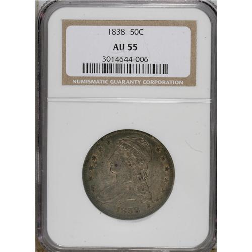 1838 50C AU55 NGC. NGC Census: (196/824). PCGS Pop