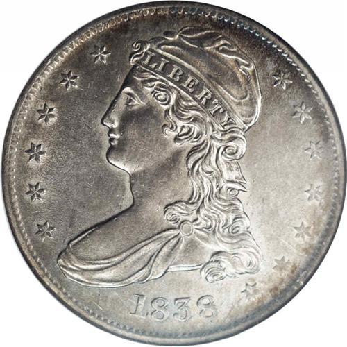 1838 50C AU58 NGC. Attractively toned with good underl 1838[50C] AU58 NGC.
