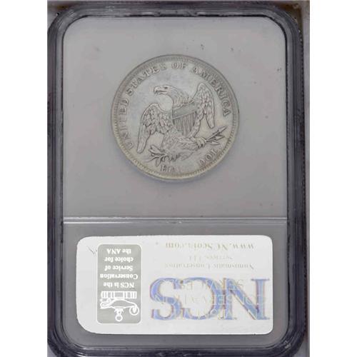 <B>1838<50C>--Improperly Cleaned--NCS. AU Details.</B></I> JR-18. A crack extends from the rim through the upper arrow shaft and into the lower part of the shield to the right wing. Medium bluish-gray surfaces are lightly hairlined and devoid of significant abrasions.<BR><I>Ex: Downey (5/1988); Ex: Stack's (4/1988), lot 3201.</B></I> Envelope Included.