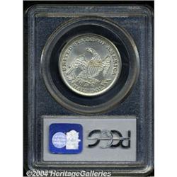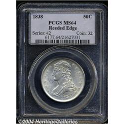 <B>1838<50C> MS64 PCGS.</B></I> This issue is an important one in half dollar coinage as it was the first year that the denomination was expressed as HALF DOL. Quite a few pieces were struck (3.5 million) but high grade examples are very seldom offered at public auction. This is a sharply struck coin that shows a thick layer of satiny luster with no toning to inhibit its fully brilliant appearance. Population: 24 in 64, 8 finer (3/04).<BR><I>From The Willamette Collection.</B></I> <BR><BR><B>Important notice:</B> Heritage usually auctions material at the rate of 200-250 lots per hour. On some occasions eBay Live bid software or the Internet may not be able to keep up with the pace of the auction. We recommend placing a realistic absentee bid now as insurance to avoid disappointment. Occasionally the auctioneer may eliminate or reject an eBay Live bid, and the auctioneer may also reopen a lot after the close of the eBay live bidding (usually because we missed an audience bid), and may reject your bid even if it shows you as the winning bidder. By bidding via eBay Live, you agree that Heritage may award the lot to another bidder at its sole discretion under the circumstances described above or any other reasonable circumstances. Since eBay bids are not shown to us until we open the lot on the floor, we treat those bids just like floor bids. In most cases the floor responds before the eBay bid is presented to us, due to Internet lag time, so for consistency we have made it a policy that floor bids are always considered first over tie eBay live bids. Also please note that all Heritage lots purchased through eBay Live carry a 20% Buyer's Premium. Please make sure you read the Terms and Conditions before you bid. </span></font></tr></table></td></tr></table>
