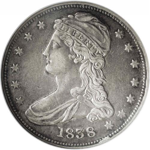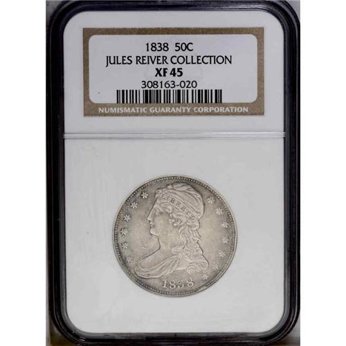 1838 50C XF45 NGC. JR-7a, R.6. An obverse rim break oc 1838[50C] XF45 NGC.
