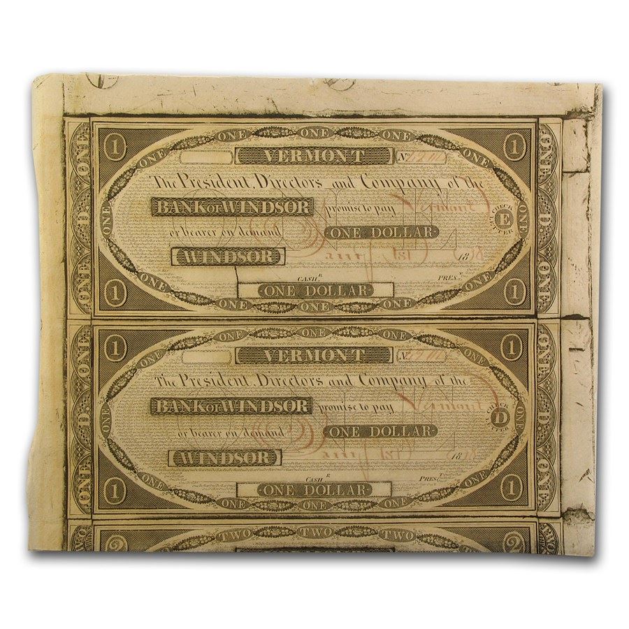 1838 Bank of Windsor, VT Pair of $1.00 Notes CU