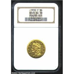 1838-C $5 AU58 NGC. Ex: Bass. Normal 5. McCloskey 1-A, R.5. This variety is distinguished as having.