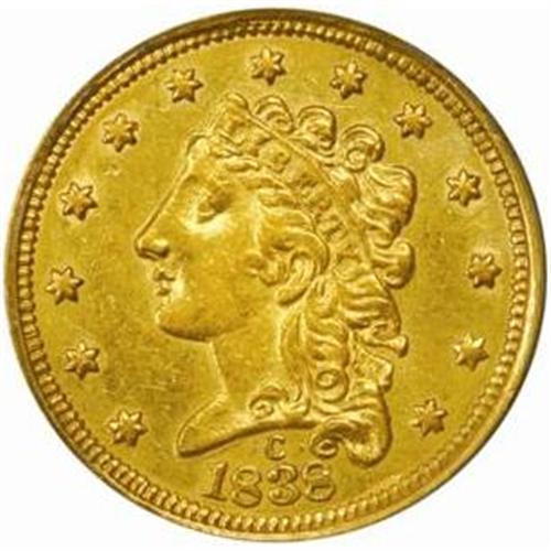 1838-C Classic Quarter Eagle. Winter 1-A, the only known dies. AU-58 (PCGS).