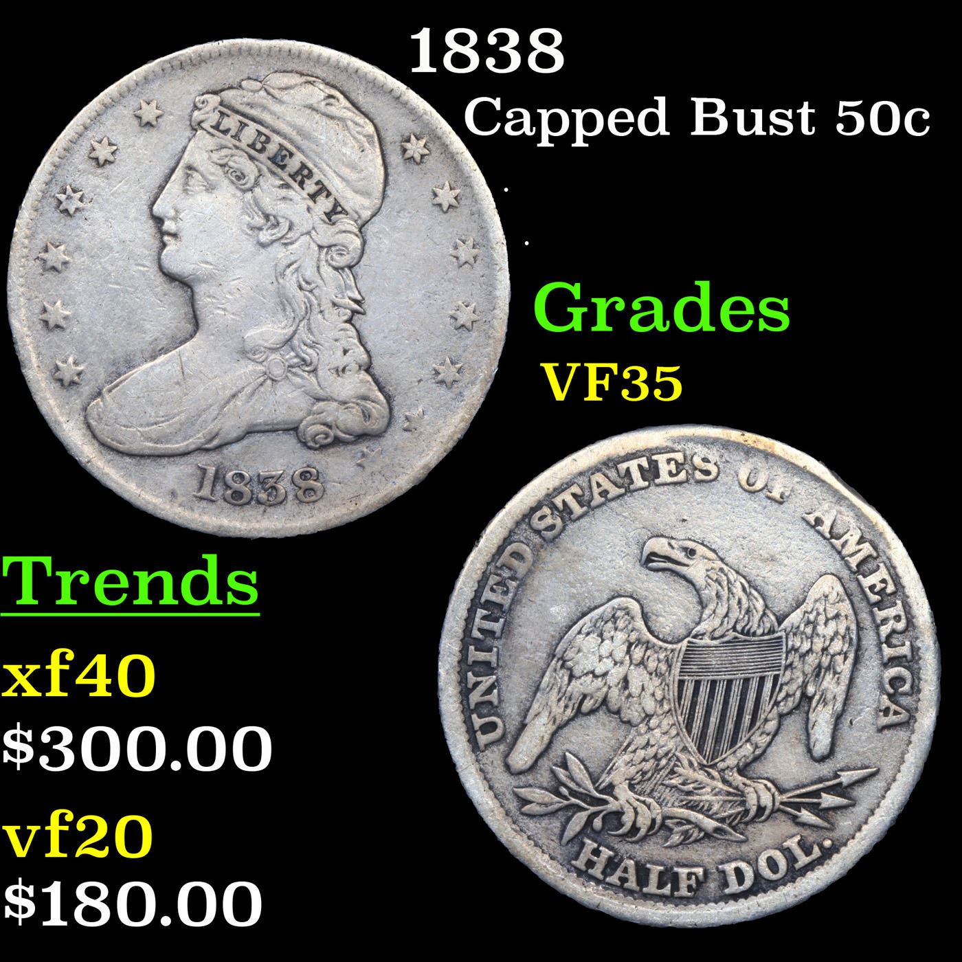 1838 Capped Bust Half Dollar 50c Grades vf++.