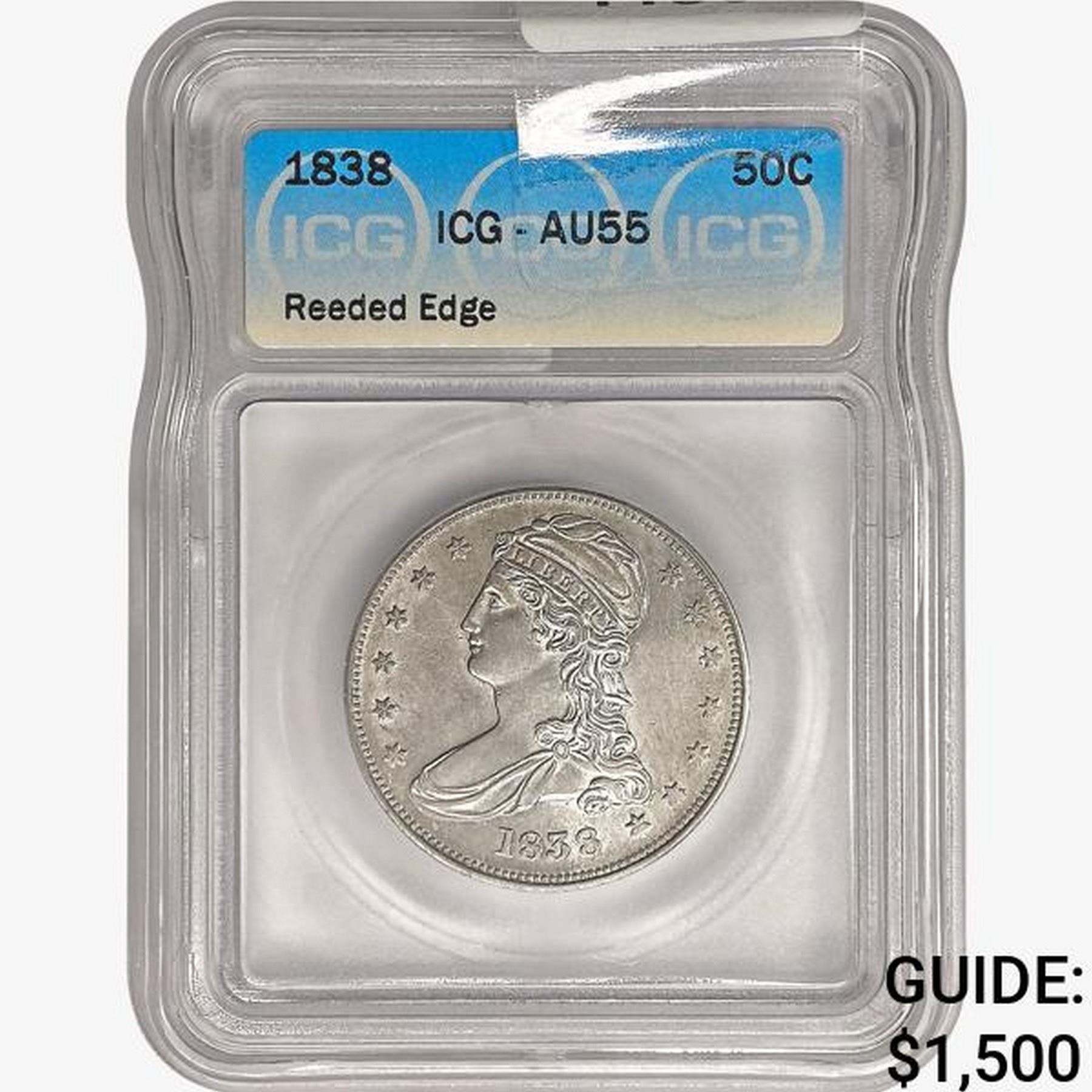 1838 Capped Bust Half Dollar ICG AU55 Reeded Edge