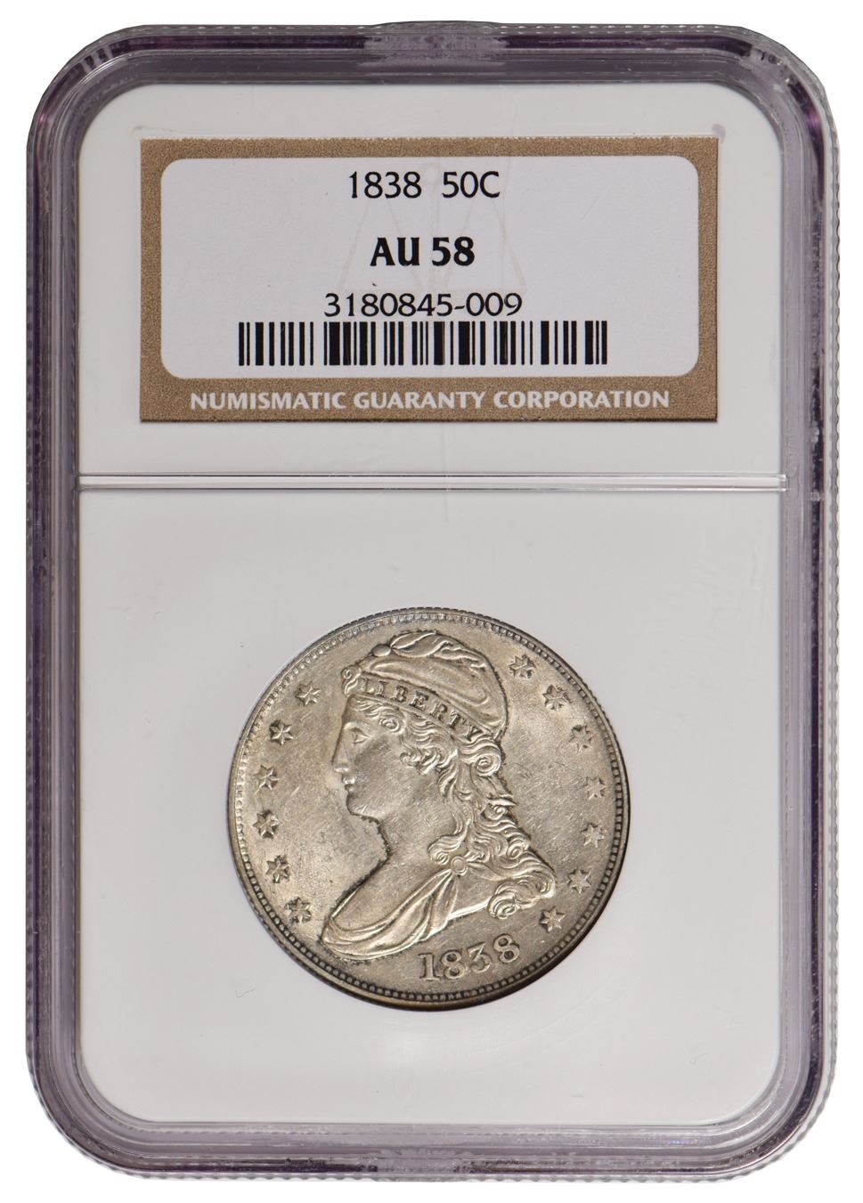 One 1838 Capped Bust Half Dollar NGC AU58.
