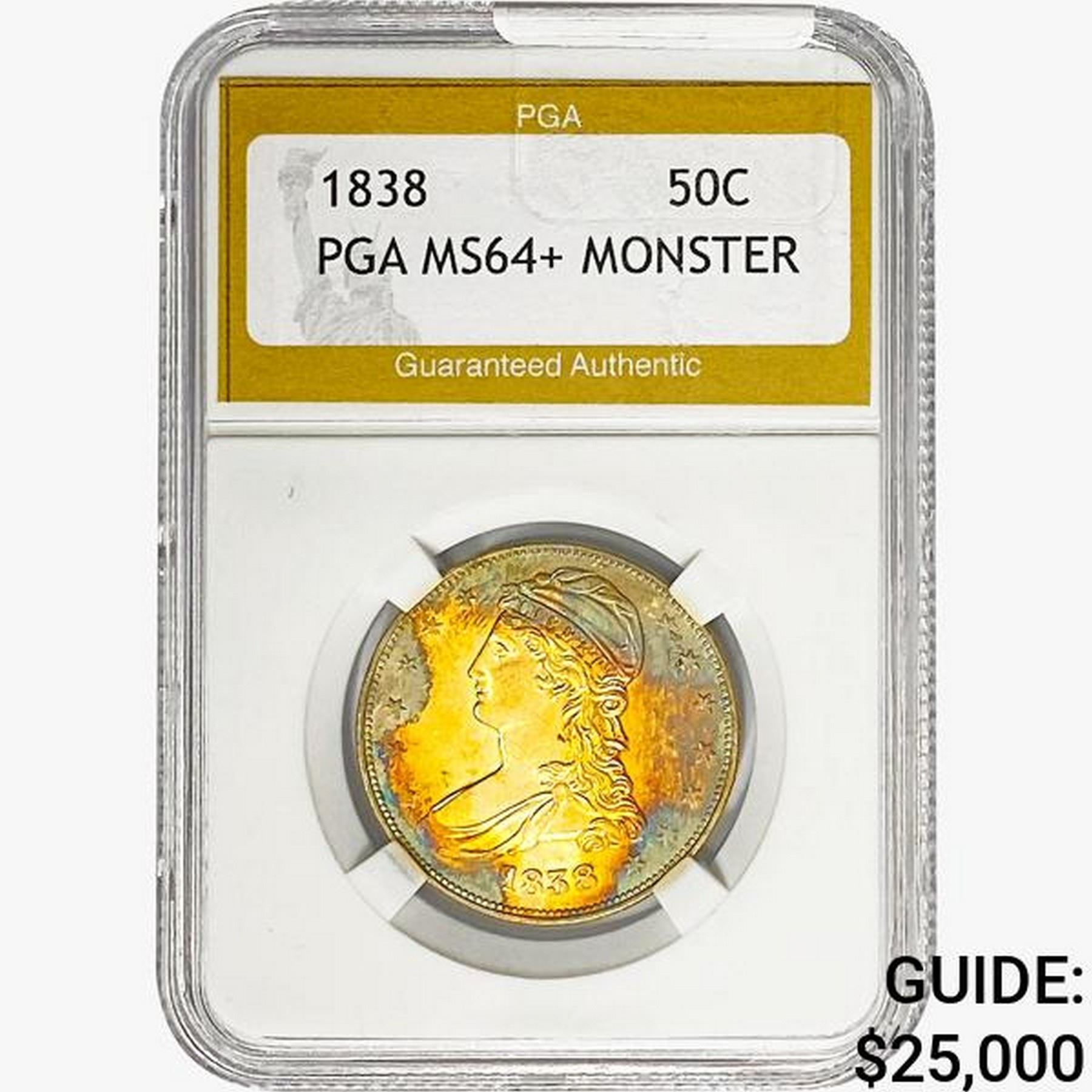 1838 Capped Bust Half Dollar PGA MS64+ MONSTER