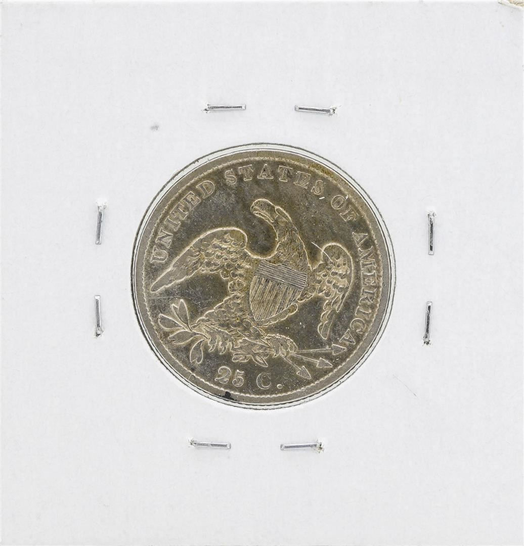 One 1838 Capped Bust Quarter Silver Coin.
