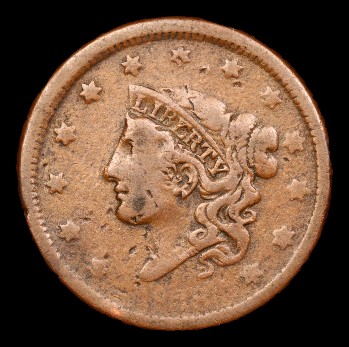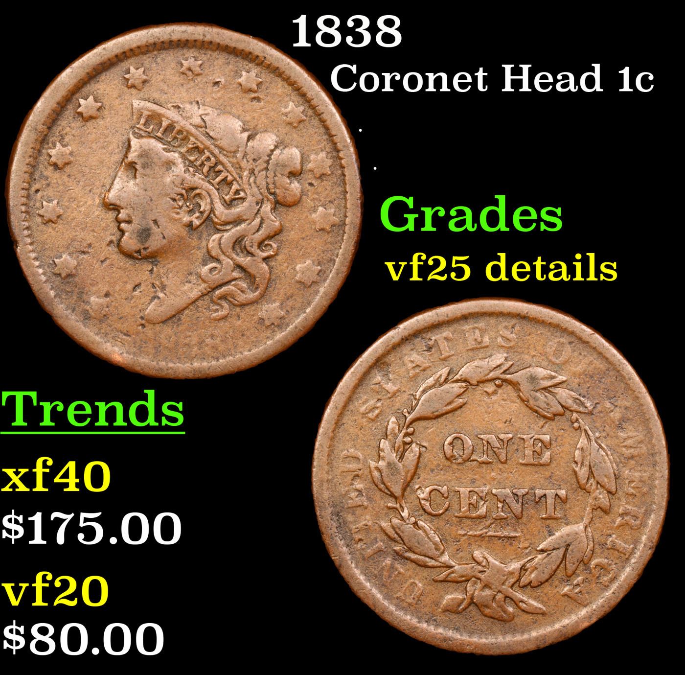 1838 Coronet Head Large Cent 1c Grades VF Details.