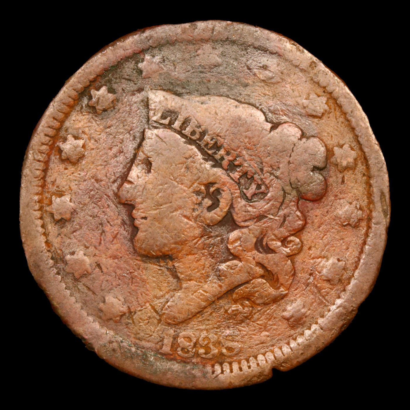 1838 Coronet Head Large Cent 1c Grades f, fine.
