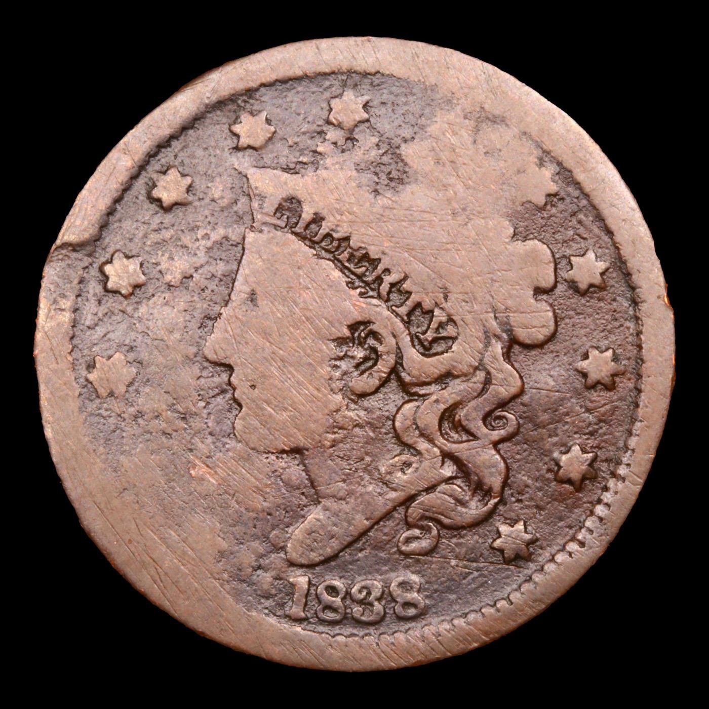 1838 Coronet Head Large Cent 1c Grades f, fine.