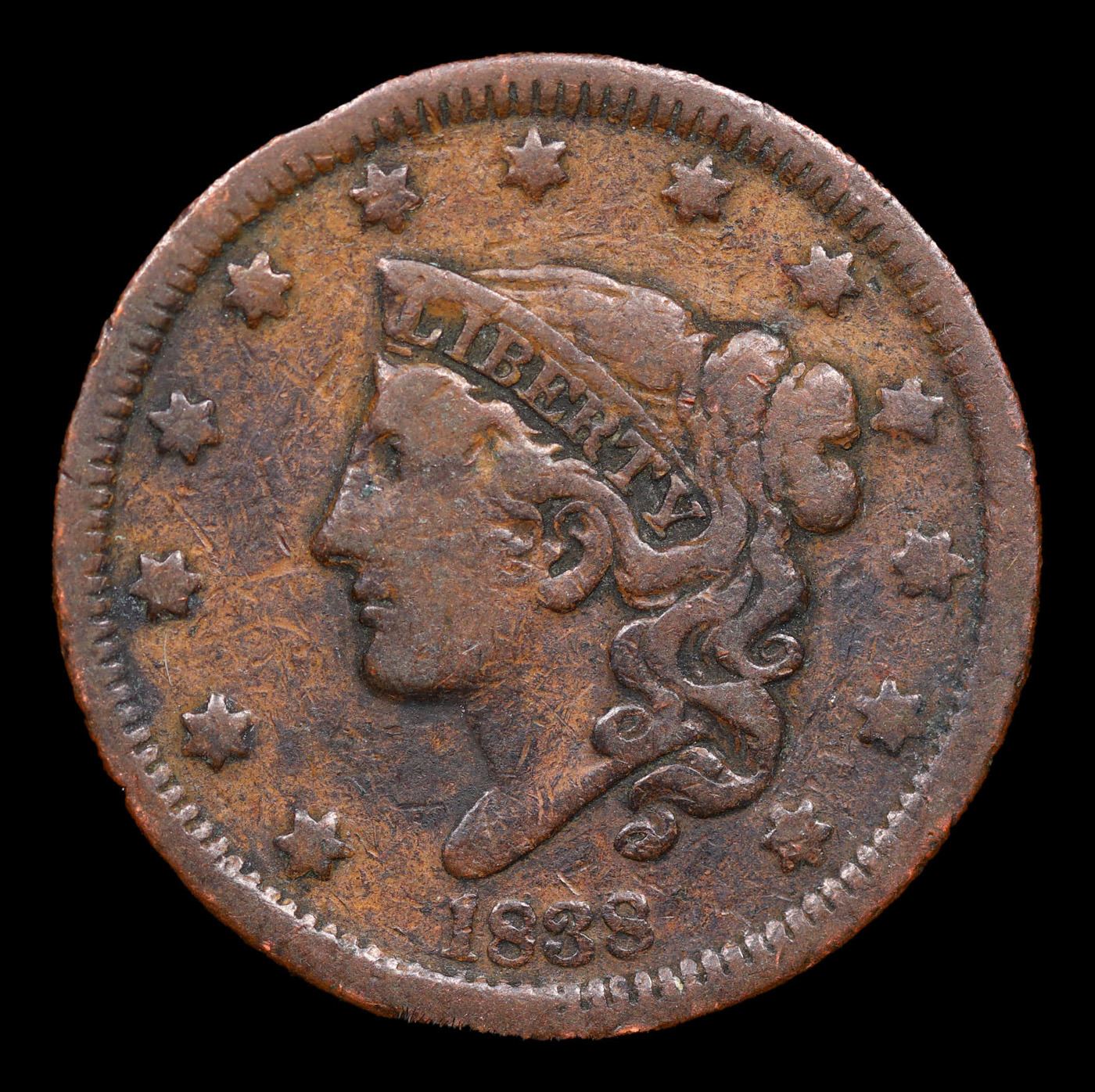 1838 Coronet Head Large Cent 1c Grades vf++.